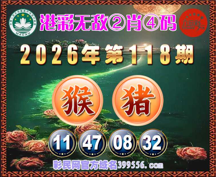118期:『港彩无敌』 🍖②肖④码🍖【猴猪】【11.47.08.32】开:猪08准